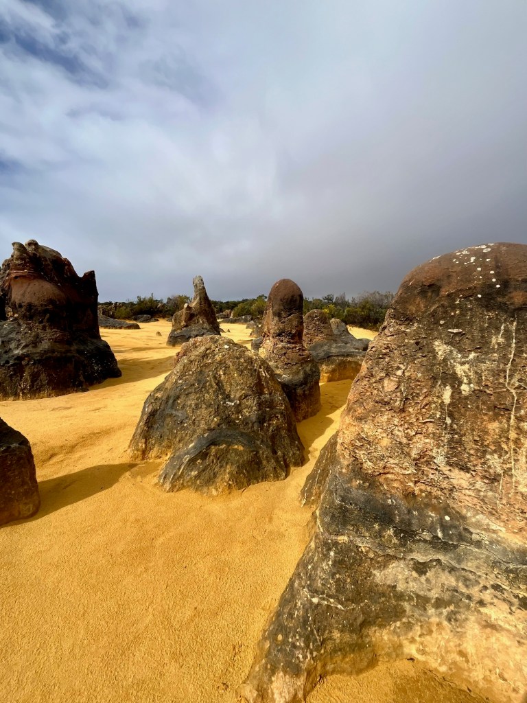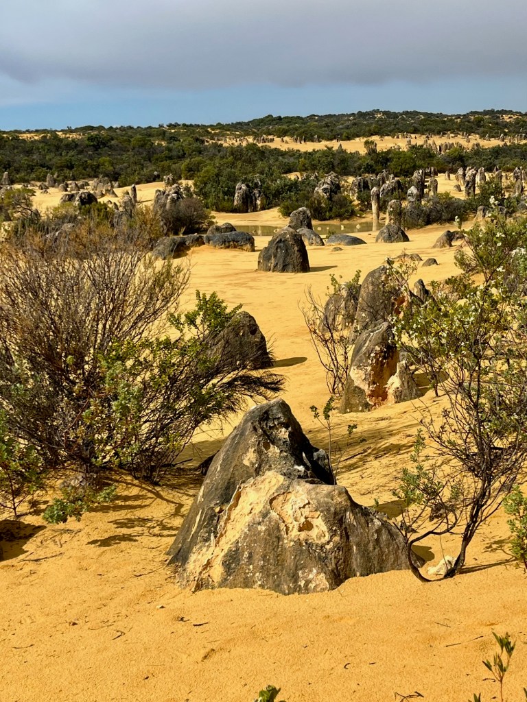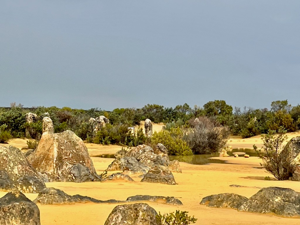 We had two objectives for staying at Jurien Bay. The first was to catch up with Jen Steadman and the second was to see “The Pinnacles”. We managed to do both. Even though the weather was terrible and we were not allowed to do the full drive through the Park, we enjoyed our stay and our visit to the Pinnacles Desert.